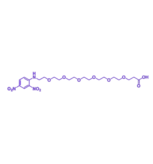 DNP-PEG6-COOH 是一种由 2,4-二硝基苯基(DNP)、六单元聚乙二醇(PEG6)链段和末端羧基(-COOH)构成的多功能化学模块,整合了光学活性、免疫识别及高效偶联能力,适用于生物医学检测、材料功能化及纳米技术开发等多领域。