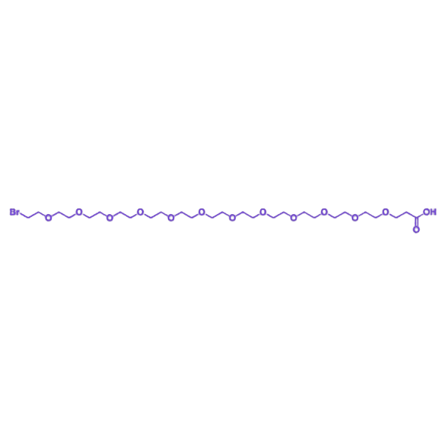 Br-PEG12-acid 是一种双功能聚乙二醇衍生物,其分子结构包含约十二个乙二醇重复单元组成的 PEG 主链,两端分别修饰溴基和羧酸基。该化合物凭借双端活性基团与适中链长的协同优势,在纳米材料表面修饰、功能高分子构建及生物分子偶联等领域具有广泛应用价值。