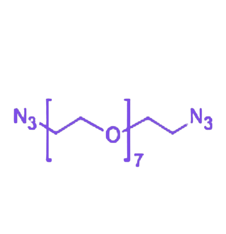 在应用层面,N3-PEG7-N3 可作为关键偶联试剂用于药物递送系统构建,实现药物分子与靶向配体的精准连接;在分子标记领域,能通过点击化学反应高效偶联荧光探针或放射性同位素,为生物成像研究提供技术支持;此外,该化合物还可参与生物材料的表面功能化修饰,用于制备靶向性载体或组织工程支架,在生物医学工程领域具有潜在应用前景。