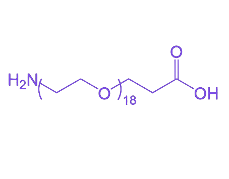 NH2-PEG750-COOH 是一种具有双官能团结构的聚乙二醇衍生物,平均分子量约为 750Da,分子两端分别修饰氨基(-NH2)与羧基(-COOH),中间通过聚乙二醇链段连接,兼具高化学活性与生物相容性,广泛适用于生物分子修饰及材料表面改性领域。