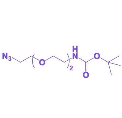 N3-PEG2-NHBoc 是一种以“叠氮基团(-N3)-二聚乙二醇(PEG2)间隔臂-叔丁氧羰基保护氨基(-NHBoc)”为核心结构的双活性位点正交可控连接子,其核心优势在于中短链 PEG 带来的“低阻-亲水”平衡特性,可作为连接炔基分子与羧基/活性酯体系的“水相兼容型准确桥梁”,适配水相多步骤偶联、小分子-多肽共轭修饰及水敏性材料表面功能化场景。 叠氮端可通过 CuAAC 或 SPAAC 反应与炔基分子实现特异性结合(特异性>99%),反应条件温和(室温、中性 pH),且不影响 Boc 保护基团稳定性;叔丁氧羰基保护的氨基端在常规偶联中呈化学惰性,可通过 10%-20% TFA/二氯甲烷体系快速脱保护(脱保护效率>98%),生成的游离氨基能与羧基或 NHS 活性酯发生高效偶联反应。 二聚乙二醇间隔臂含 2 个氧乙烯单元,分子长度约 8.5 Å,相比 N3-PEG1-NHBoc 的单聚链,亲水性显著提升(水溶解度提高 1-2 倍),可直接适配水相反应体系,无需大量有机相辅助溶解;同时保持低空间位阻特性,避免长链 PEG 导致的构象干扰,尤其适合需兼顾水相兼容性与修饰精度的应用场景,是平衡“水相适配性”与“修饰准确度”的理想工具。