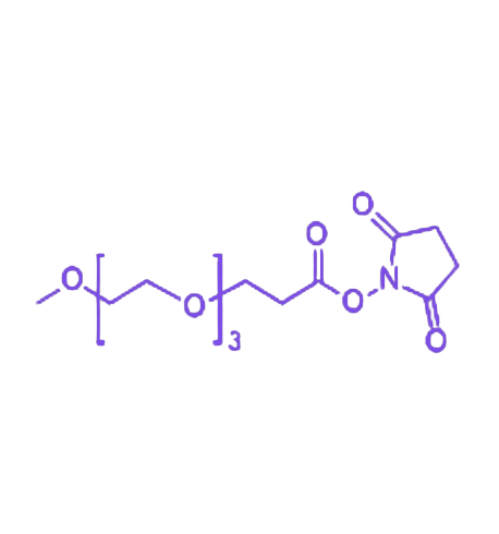 mPEG3-SPA(甲氧基聚乙二醇 3 琥珀酰亚胺丙酸酯)是一种重要的聚乙二醇衍生物,其分子结构由一端稳定的甲氧基(-OCH₃)连接含三个乙二醇单元的 PEG 短链,另一端修饰活性琥珀酰亚胺丙酸酯(SPA)基团构成。该化合物兼具适度亲水性与反应活性,在生物医学及材料科学领域具有广泛应用价值。 PEG 链赋予 mPEG3-SPA 良好的溶解性能,可溶于水及 DMSO、DMF 等常见极性有机溶剂。其核心功能基团 SPA 能够与蛋白质、多肽等生物大分子的氨基发生高效共价反应,形成稳定酰胺键,实现生物分子的 PEG 化修饰。 经 mPEG3-SPA 修饰的生物分子,在保持固有生物活性的同时,可显著提升稳定性,延长体内循环时间,并有效降低免疫原性。这一特性使其在药物研发中可优化候选药物的药代动力学参数,在生物成像领域有助于提高检测灵敏度与靶向效率,为生物医学研究提供关键技术支持。