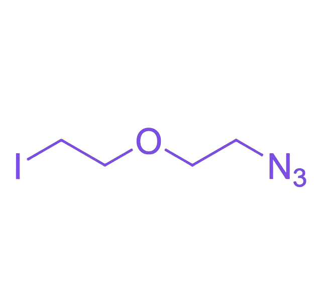 N3-PEG2-iodide(叠氮-聚乙二醇2-碘化物)是一种双官能化线性聚乙二醇衍生物,其分子结构一端含叠氮基(–N₃),另一端为碘代烷基(–I),中间由两个乙二醇重复单元构成PEG2柔性连接链。该化合物兼具空间延展性与高反应活性,广泛用作有机合成、生物偶联及材料功能化的中间连接体,尤其适用于构建纳米材料表面修饰层或小分子探针连接桥。