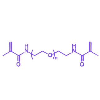 MAA-PEG-MAA(甲基丙烯酸-聚乙二醇-甲基丙烯酸)是一种具有明确化学结构的双官能团修饰聚合物,通过聚乙二醇(PEG)主链两端共价连接甲基丙烯酸(MAA)基团形成。该分子设计兼具PEG的生物相容性与MAA的可聚合特性,在生物医用材料与高分子合成领域具有重要应用价值。 该化合物的分子结构以线性PEG链为核心骨架,两端通过酯键或醚键连接MAA单体单元,形成对称的双亲性分子结构。这种结构赋予材料优异的亲水性和可交联性,其数均分子量可通过PEG链段长度调控,通常在1,000至20,000 Da范围内。在水溶液中,PEG链段的水合作用可有效降低界面张力,而MAA基团则提供了通过自由基聚合反应实现材料固化的化学位点,使该分子可用作生物相容性水凝胶的交联剂或功能单体。其典型应用包括组织工程支架制备、药物控释系统构建以及生物活性涂层修饰,通过调控交联密度与PEG链长,可灵活调节材料的力学性能与降解速率,满足不同场景的应用需求。
