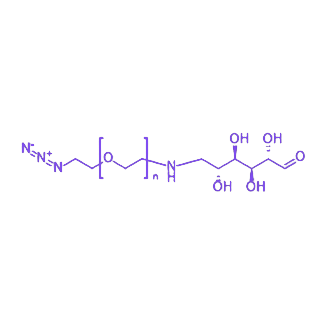 该产品分子结构由三部分构成:末端修饰的叠氮基团(N3)提供高效点击化学反应位点,可与炔基、环炔烃等基团发生特异性偶联;中间的聚乙二醇(PEG)链段赋予分子良好的水溶性、生物相容性及空间位阻效应,能有效减少非特异性相互作用;末端的甘露糖(MAN)作为生物配体,可特异性识别细胞表面的甘露糖受体,实现主动靶向递送。其典型分子量范围为500-10000 Da,在水及常用缓冲液中具有良好溶解性,在中性pH条件下保持化学稳定性。该特性使其适用于构建主动靶向药物载体、糖基化修饰生物材料表面、以及制备基于糖-受体相互作用的生物分子探针,在肿瘤靶向治疗、细胞成像及生物分子功能研究中展现出独特优势。