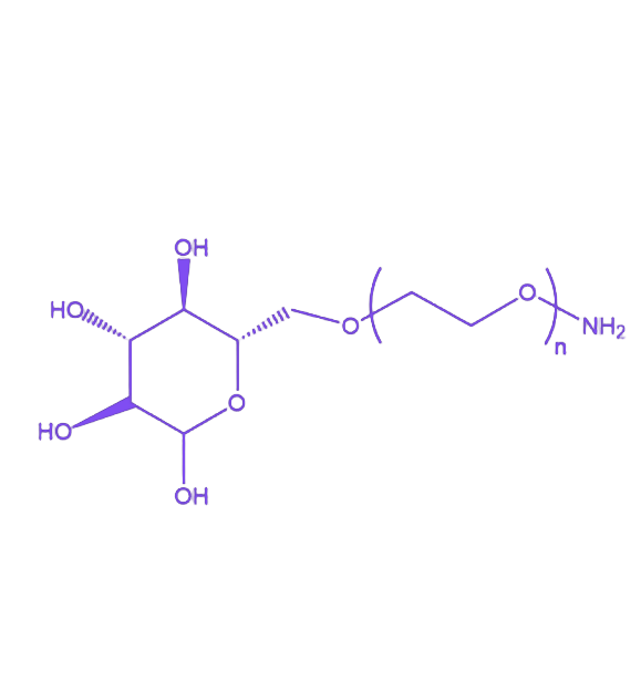 NH2-PEG-Glucose(氨基-聚乙二醇-葡萄糖)是一种兼具生物相容性与靶向功能的多功能高分子偶联物,其分子结构通过化学链接将氨基基团、聚乙二醇链段与葡萄糖分子有序整合,为生物医学领域提供了高性能的材料解决方案。 该产品的分子结构以线性聚乙二醇(PEG)为主链,一端修饰有反应活性的伯胺基团,可高效偶联生物分子如蛋白质、多肽或药物载体;另一端通过糖苷键连接葡萄糖单元,赋予材料优异的生物靶向性,能特异性识别细胞膜表面的葡萄糖转运蛋白。其典型分子量范围覆盖1kDa至20kDa,在水溶液中呈现良好的分散性与稳定性,且具有低免疫原性和可调节的亲疏水平衡特性。在应用层面,该偶联物可作为靶向药物递送系统的关键组件,通过葡萄糖介导的主动靶向机制提升药物在病灶部位的富集效率,同时PEG链段的空间位阻效应能有效延长循环半衰期;此外,在生物传感器、细胞成像及组织工程支架修饰等领域,其独特的结构设计也展现出显著的应用潜力。