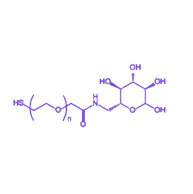 该化合物的分子结构以线性聚乙二醇链为核心骨架,一端通过糖苷键连接半乳糖残基,另一端修饰活性巯基(-SH)基团。这种结构赋予分子双重功能:半乳糖单元可通过与细胞表面的半乳糖受体特异性结合实现靶向递送,而巯基则能与金纳米颗粒、量子点等材料表面的金属原子形成稳定的Au-S共价键,实现生物分子的高效固定。在物化性质方面,聚乙二醇链段的引入有效提升了分子的水溶性和生物相容性,降低了免疫原性,同时其柔性结构可减少空间位阻效应,确保靶向配体与受体的高效识别。该产品在纳米载药系统构建中可作为靶向修饰剂,通过调控PEG链长和半乳糖取代度,优化载体的靶向效率和循环半衰期;在生物传感领域,其巯基末端可介导纳米探针的功能化修饰,实现对特定细胞或生物分子的高灵敏度检测。