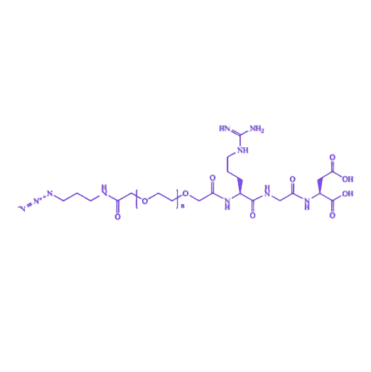 N3-PEG-RGD(叠氮-聚乙二醇-靶向肽)是一种具有精准靶向功能的功能性生物高分子材料,通过将叠氮基团、聚乙二醇链段与RGD靶向肽序列进行共价偶联,实现了生物相容性与靶向识别能力的协同整合。该产品在生物医学领域展现出独特的应用潜力,为药物递送、生物成像及组织工程研究提供了高效工具。 该产品分子结构由三个关键功能单元构成:末端修饰的叠氮基团(N3)提供了高效的点击化学反应位点,可通过铜催化叠氮-炔环加成(CuAAC)等反应实现与含炔基分子的特异性偶联;中间的聚乙二醇(PEG)链段赋予分子良好的水溶性、生物相容性及空间位阻效应,有效减少非特异性蛋白吸附并延长体内循环时间;末端的RGD靶向肽序列(精氨酸-甘氨酸-天冬氨酸)能够特异性识别细胞表面的整合素受体(如αvβ3),使偶联物实现对肿瘤细胞或新生血管等靶标的主动靶向递送。其物化性质表现为白色至类白色粉末或冻干品,易溶于水及常用缓冲液,在中性pH条件下保持结构稳定。该产品可广泛应用于靶向药物载体构建、荧光探针标记、细胞 adhesion 研究及靶向性纳米材料制备等场景,为提高治疗效率、降低系统毒性提供了分子设计层面的解决方案。