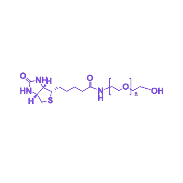 Biotin-PEG-OH(生物素-聚乙二醇-羟基)是一种具有生物靶向功能的线性聚合物衍生物,通过将生物素(Biotin)与聚乙二醇(PEG)链段共价连接,并在末端引入羟基(-OH)基团构建而成。该化合物兼具生物素的特异性识别能力与PEG的亲水性及生物相容性,在生物偶联、药物递送及生物分子修饰等领域具有重要应用价值。 该产品的分子结构以线性PEG链为核心骨架,一端通过稳定的酰胺键或醚键连接生物素分子,另一端保留羟基活性基团,形成"生物素-PEG-羟基"的明确拓扑结构。其数均分子量可根据需求定制(通常范围500-20000 Da),在水溶液中展现良好的分散性和稳定性,不易受pH值(3.0-8.0)及离子强度变化的显著影响。生物素基团可与链霉亲和素(Streptavidin)或亲和素(Avidin)发生特异性高亲和力结合(解离常数Kd≈10⁻¹⁵ M),这种分子识别特性使其成为生物分子标记与分离的理想工具;同时,PEG链段的引入可有效降低修饰后生物分子的免疫原性,减少非特异性吸附,并通过长循环效应提升药物递送系统的体内稳定性。羟基末端则为后续功能化修饰(如偶联药物分子、荧光探针或靶向配体)提供了便捷的反应位点,可通过酯化、醚化等化学反应进一步拓展其应用场景,适用于抗体偶联药物(ADC)制备、生物芯片构建及仿生材料表面功能化等前沿研究领域。