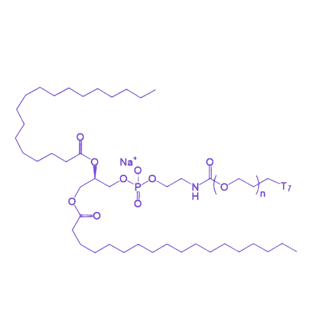 DSPE-PEG-T7是一种兼具特殊结构与功能的生物分子,其全称为磷脂-聚乙二醇-T7肽或二硬脂酰基磷脂酰乙醇胺-聚乙二醇-T7肽,核心功能单元为具有靶向特性的T7肽段。