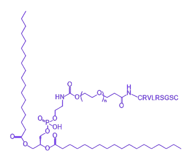 DSPE-PEG-CRVLRSGSC 是由 CRVLRSGSC 肽与 DSPE-PEG 通过化学偶联构建的功能性生物材料,其分子结构整合了脂质载体、亲水性修饰链与靶向功能肽段的多重特性,在药物递送系统及生物医学领域展现出潜在应用价值。