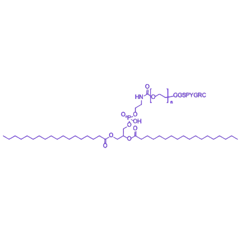 应用潜力与价值:作为新型靶向递送载体,DSPE-PEG-GGSPYGRC在肿瘤治疗、炎症性疾病干预等领域具有重要应用前景。通过调控PEG分子量、多肽修饰密度及载体尺寸,可进一步优化其体内药代动力学行为,为提高难溶性药物的Treatment效果提供解决方案。该复合物的模块化设计也为功能拓展(如pH响应释放、光热治疗协同等)奠定基础,是当前纳米药物递送领域的重要研究方向。