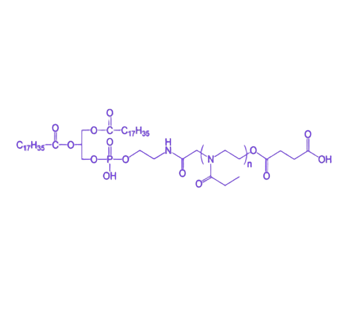 DSPE-PEOz-COOH(磷脂-聚(2-乙基-2-噁唑啉)-羧基)是一类融合 DSPE、PEOz 与羧基(-COOH)优势特性的功能两亲性嵌段共聚物,在精准化合物递送领域展现出显著应用潜力。其核心价值在于通过多组分协同作用实现智能递送功能,兼具结构可调控性与生物功能化修饰能力。