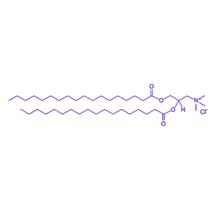 外观呈白色或类白色固体,易溶于氯仿、二氯甲烷等有机溶剂,水中溶解性较低但可通过助溶剂实现分散。分子结构中,带正电荷的头基能够通过静电作用与带负电的核酸(如DNA、RNA)、药物分子或细胞膜稳定结合;疏水尾链则支持通过自组装形成脂质体或纳米颗粒结构,为功能物质递送提供载体框架。