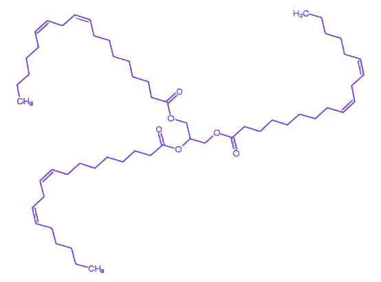 Trilinolein(甘油三亚油酸酯)是一种由甘油与三个亚油酸分子通过酯化反应形成的三酯类化合物,具有明确的化学结构和特定的合成路径。 其化学结构以甘油为骨架,分子中1、2、3位的羟基分别与三个亚油酸分子的羧基发生酯化反应。亚油酸作为构成成分,是一种十八碳二烯酸(C18:2),在碳链的9位和12位含有两个顺式双键,这种结构特征赋予了该化合物特定的化学性质和潜在应用价值。 在合成方法上,Trilinolein通常通过甘油与亚油酸在催化剂存在的条件下进行酯化反应制备,反应过程中需控制适当的温度、压力等条件以确保产物的纯度和收率。
