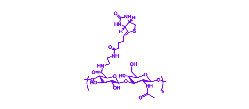 HA-Biotin(透明质酸-生物素)是通过共价键将透明质酸的糖胺聚糖链与生物素分子偶联形成的多功能生物活性探针,其核心价值在于整合了透明质酸的生物相容性/靶向性与生物素的超高亲和力结合特性,为复杂生物体系中糖基化分子的示踪、分离及功能调控提供了不可替代的工具。