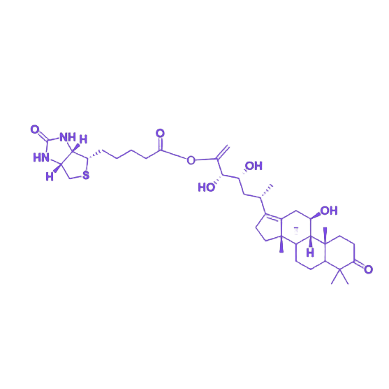 生物素作为该化合物的关键组成部分,以辅酶形式广泛参与机体内的羧化反应,在碳水化合物、脂肪及蛋白质的代谢调控中发挥核心作用。其分子结构中的脲基与噻吩环结构赋予了良好的水溶性和生物相容性,能够通过与生物体内特定受体或酶的相互作用,提升整体化合物的细胞摄取效率。泽泻醇 G 作为来源于泽泻植物的三萜类天然产物,具有独特的四环三萜母核结构,其生物活性主要体现在对特定信号通路的调控作用,而生物素的引入通过改善其药代动力学特性,进一步增强了其在体内环境中的靶向作用效果。