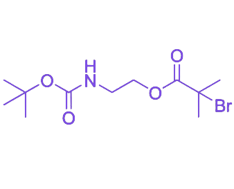 2-(Boc-amino)ethyl 2-bromo-2-methylpropanoate(Boc-AEMA-Br)是一种功能化的α-溴代酯类化合物,具有明确的Boc保护胺基结构,是原子转移自由基聚合(ATRP)中常用的可控引发剂。其分子结构同时包含Boc保护的胺基官能团与高反应性的溴代酯结构,能够在温和反应条件下引发丙烯酸酯、甲基丙烯酸酯、苯乙烯等多种单体的活性聚合,并实现聚合物链末端的Boc保护胺基功能化,为功能高分子材料的精准合成提供基础。 该化合物具备结构明确、反应活性高、易于纯化的特性,适用于合成具有末端氨基功能团的嵌段共聚物、接枝聚合物等复杂结构的功能高分子材料。在通过酸性条件脱除Boc保护基后,暴露的氨基可进一步参与酰胺化、点击化学等修饰反应,显著拓展其在生物材料表面改性、药物载体分子设计、先进功能涂层制备等领域的应用潜力。