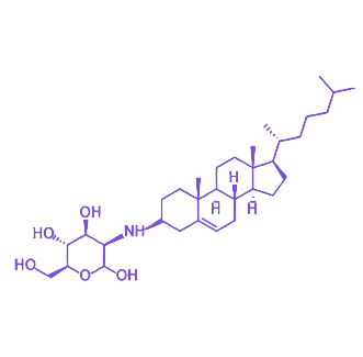 D-甘露糖胺作为一种重要的 氨基糖,其分子结构中同时具有羟基与氨基官能团,在生物体内主要参与糖蛋白、糖脂等复合糖分子的生物合成过程,是细胞表面糖基化修饰的关键前体物质。胆固醇则是一种具有 四环甾体结构 的脂质分子,不仅是生物膜的基本组成成分,维系细胞膜的流动性与稳定性,还参与体内类固醇激素合成及脂代谢调控等重要生理过程。两者通过复合形成的D-Mannosamine-Cholesterol,可能在水溶性、靶向识别能力及生物相容性等方面展现优化特性,有望作为新型分子探针、药物递送载体或膜工程材料进行深入研究与开发。