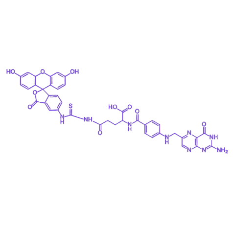 叶酸作为水溶性B族维生素,其分子结构包含蝶啶、对氨基苯甲酸及谷氨酸残基,可参与生物体内DNA合成、修复及甲基化等关键代谢过程,对细胞生长、增殖与分化至关重要,且能通过特殊结构与多种蛋白质、受体高亲和力结合。FITC是常用荧光染料,具有490-495nm最大吸收波长520-530nm最大发射波长,可产生明亮黄绿色荧光,具备光稳定性强、荧光量子产率高的特点。