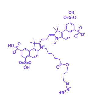 Cy3.5-N3 是一种由花菁类荧光染料 CY3.5 与叠氮基团(N3)通过化学反应连接形成的功能性化合物,兼具高荧光性能与化学活性,可用于生物分子的特异性荧光标记。