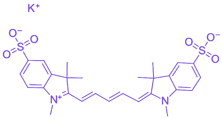 sulfo-CY5-dimethyl 是通过在 CY5 分子吲哚环引入二甲基取代基,并在苯环位点修饰磺酸钠基团(-SO₃Na)得到的功能化近红外荧光染料,具备高水溶性、优异光学性能及结构稳定性,适用于水相体系下的生物分子标记与成像分析。