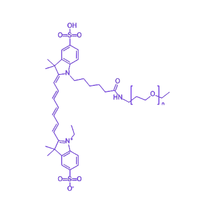 Cy7-PEG是由近红外荧光染料Cy7与聚乙二醇通过化学偶联形成的功能性化合物,兼具Cy7的荧光标记特性与聚乙二醇的生物相容性优势,在生物医学研究及化合物研发领域具有重要应用价值。 Cy7作为荧光基团,具备强荧光强度、优异的光稳定性及较长的激发/发射波长,可有效减少生物组织与血液背景荧光干扰,提供高信噪比的荧光信号,适用于深层组织成像及动态示踪研究。聚乙二醇作为载体分子,具有高水溶性、低免疫原性及生物惰性,可显著提升偶联物的体内循环时间,降低非特异性吸附,同时增强分子稳定性,满足生物体系中对探针分子的严苛要求。 该偶联物通过将Cy7的光学特性与聚乙二醇的生物理化优势有机结合,实现了荧光标记功能与生物相容性的协同增效,为活体细胞成像、药物递送追踪、生物分子相互作用研究等场景提供了高性能工具,是生物医学领域中荧光检测与示踪技术的理想选择。