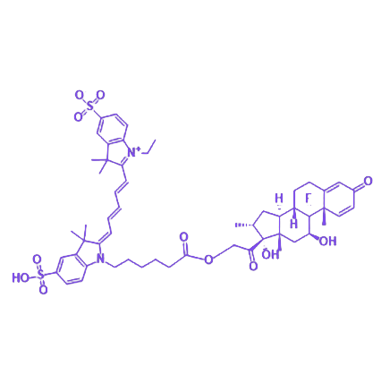 Cy5-地塞米松是通过化学键将具有免疫抑制和抗过敏作用的类固醇化合物地塞米松与近红外荧光染料Cy5进行分子偶联制成的荧光标记化合物,该产品兼具地塞米松的生物活性与Cy5的光学特性,适用于生物样本中标记物的动态追踪与可视化观察。