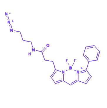 BDP R6G-N3是一类融合氟硼二吡咯(BDP)骨架稳定性与罗丹明6G(R6G)高荧光亮度特性的点击化学染料,通过叠氮基团的高反应活性实现生物分子的特异性标记,是生物医学研究领域的高性能荧光工具。其CAS号为2183473-23-4,分子式C21H21BF2N6O,外观呈橙红色固体状,在有机溶剂中具有良好溶解性,经条件优化后可适配水相实验体系。
