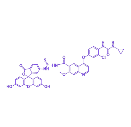 FITC-Lenvatinib 是由异硫氰酸荧光素(FITC)标记仑伐替尼形成的功能性复合物,兼具母体药物的生物活性与荧光示踪能力,为抗肿瘤药物研发提供可视化研究工具。