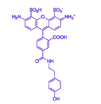 其作用机制为:在 HRP 催化下,分子中的 酪酰胺基团可迅速与目标区域附近的酪氨酸残基发生共价结合,实现对目标生物分子的特异性荧光标记。该标记过程具有较高的特异性,能准确识别并结合目标分子,减少非特异性标记干扰;同时信号放大效率可观,通过多次循环标记可显著增强荧光信号强度,使原本难以检测的低丰度生物分子得以清晰观测。