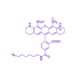 APDye532-N3 是一种将 APDye532 荧光染料与叠氮基团通过柔性连接臂共价结合的功能性荧光探针,具备橙黄色低背景荧光与高特异性点击反应活性的协同优势,适用于复杂生物样本中炔基修饰生物分子的精准标记与检测。 APDye532 作为荧光报告单元,其激发波长(~532nm)与发射波长(~550nm)有效避开生物样本(如细胞色素、胶原纤维)的自发荧光区间,显著降低背景干扰,提升检测信噪比,解决了绿色荧光探针在复杂样本中“背景高、信号弱”的痛点。该荧光染料具有高荧光量子产率(约 0.88)和强抗光漂白性,标记后可稳定输出信号,适配荧光显微镜、流式细胞仪、活体成像系统等主流检测设备,确保检测结果的可靠性与准确性。 叠氮基团作为点击化学的经典活性位点,可通过铜催化叠氮-炔烃环加成反应(CuAAC)或无铜点击反应(应变促进叠氮-炔烃环加成反应 SPAAC),与含炔基(-C≡CH)的生物分子(如蛋白质、多肽、核酸、糖链)高效偶联。反应条件温和,无需高温、强酸/强碱,在常温、生理 pH(6.5-8.5)下即可快速进行,对生物分子的空间结构与活性破坏极小,即使针对敏感样本(如活细胞、活体组织)也能实现准确标记,弥补了传统叠氮荧光探针“反应条件苛刻、生物相容性差”的缺陷。 分子结构中的柔性连接臂(通常为聚乙二醇链)可有效减少荧光染料与靶标分子的空间位阻,进一步降低非特异性吸附,提升标记特异性,是复杂生物样本(如组织切片、活体模型)中炔基修饰生物分子标记的理想工具。