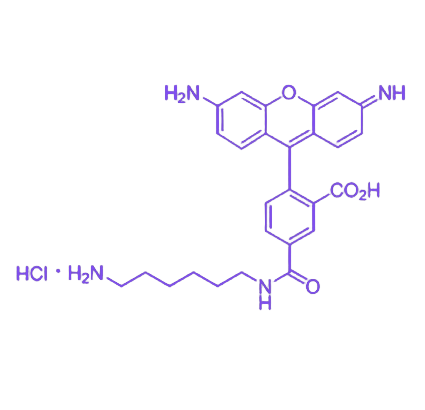 Rhod G-NH₂(5-Rhodamine Green amine)作为罗丹明绿系列的重要氨基衍生物,以游离氨基为功能位点,兼具高荧光亮度、宽 pH 适用性与良好反应活性,是生物偶联与细胞成像领域的核心工具。其通过分子结构的优化设计,在保持优异荧光性能的同时,具备高反应灵活性与生物相容性,可满足定制化标记及准确检测场景的多样化需求,并已通过 HPLC、荧光光谱、核磁共振三重质控确保产品质量。 该产品的分子式为 C₂₇H₂₉ClN₄O₄,分子量 472.54,常温下呈现绿色至深绿色结晶性粉末状,纯度可达 95%。其核心性能优势源于 5-罗丹明绿母核结构,激发波长为 504 nm,发射波长 532 nm(绿色荧光区域),荧光量子产率高达 0.90,信号强度显著优于同类绿色荧光染料。游离氨基基团的引入保留了高反应灵活性,可与多种活性基团进行特异性偶联,适配不同生物分子标记需求,有效避免活性酯直接标记可能产生的非特异性风险。同时,分子结构中氨基与季铵盐的协同作用提升了水溶性,可在低浓度 DMSO(≤5%)辅助下应用于水溶液体系,从而减少对细胞的潜在 Poison 性。 产品包装规格丰富,涵盖科研小剂量(10 mg、50 mg、100 mg)及中试生产剂量(1 g、5 g),并支持按需分装。使用过程中需注意全程避光操作,因 504 nm 激发光易导致染料光降解;水溶液需现配现用,长时间放置可能因氨基氧化导致活性下降;储存时应置于-20℃密封棕色瓶中,未开封产品保质期为 24 个月,开封后建议 1 个月内用完,且禁止反复冻融。 作为定制化荧光工具的关键原料,Rhod G-NH₂在定制化抗体标记、细胞特异性成像、功能材料修饰等场景中展现出显著优势,有效突破传统荧光试剂的应用局限,为准确生物检测与功能材料研发提供 efficient 解决方案。