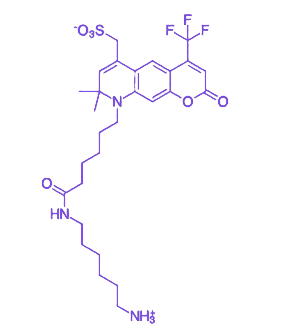 AF430-NH2 是 Alexa Fluor 系列荧光染料中的高性能成员,其核心结构修饰有高反应活性的氨基官能团(-NH2),具备优异的荧光性能与灵活的生物分子偶联能力,广泛适用于荧光成像及生物分子标记领域。