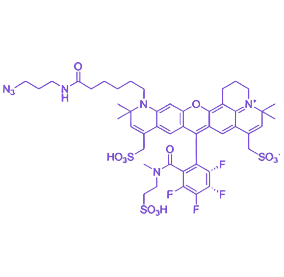 APDye633-N3是一种高性能近红外荧光染料,具有高亮度、低背景及良好光稳定性,通过叠氮-炔基点击化学实现高效共价偶联,适用于生物分子标记及高灵敏检测,在科研与临床前研究中具有广泛应用价值。 该染料发射波长约为633 nm,处于近红外光谱区,此特性使其在复杂生物体系中具备优异的组织穿透力,可有效降低自发荧光干扰,特别适合深层组织成像与高背景样品检测。分子结构中含有的叠氮(–N₃)官能团,能在Cu(I)催化条件下与炔基(–C≡CH)化合物发生特异性点击化学反应,实现与生物分子的快速、稳定偶联,且不影响目标分子原有生物活性。 产品具有高亮度与强光稳定性,在长时间成像或多次扫描实验中可维持高质量信号输出,光漂白耐受性显著优于传统荧光素类染料。良好的水溶性使其能在多种缓冲体系中保持稳定,分子设计优化了疏水性与电荷平衡,有效减少非特异性吸附,提升标记特异性与实验重现性。 在应用场景中,可广泛用于免疫荧光分析、核酸标记、活细胞动态追踪等实验,通过与DNA寡核苷酸、蛋白质、纳米颗粒等生物分子偶联,实现高密度、多位点标记。与共聚焦显微镜、流式细胞术、近红外小动物成像系统等现代分析技术高度兼容,满足从基础研究到临床前研究的多重需求,为分子诊断、纳米药物研发及高通量筛选提供可靠的荧光标记工具。